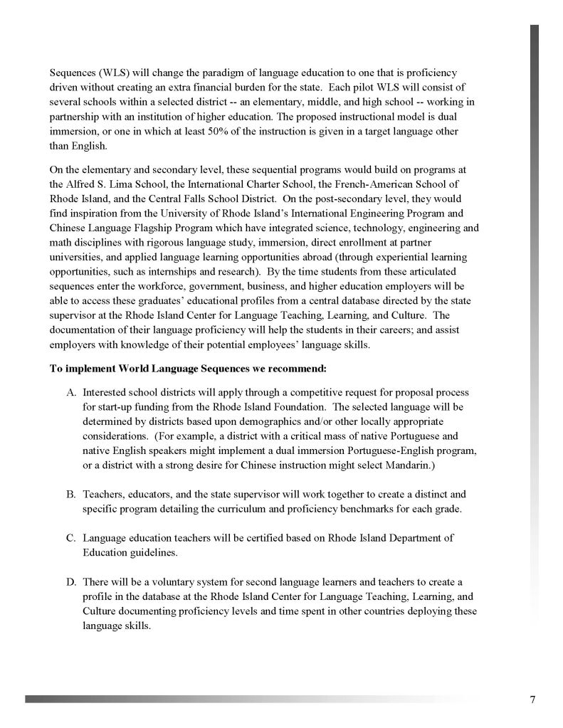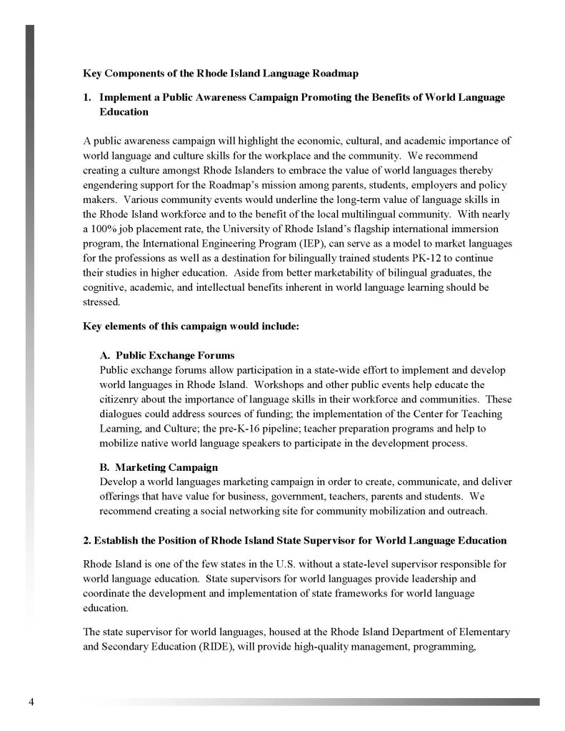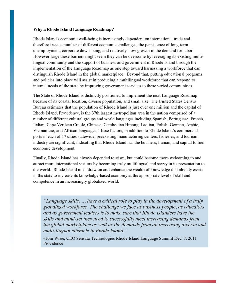 Robynn contributed to the University of Rhode Island’s Language Roadmap initiative by supporting research, communications, and project coordination focused on expanding second-language access and proficiency across the state. She assisted in gathering stakeholder input, developing clear and engaging written materials, and helping synthesize data into actionable recommendations. Her work strengthened the project’s ability to connect educators, policymakers, and community partners around a shared vision for language excellence in Rhode Island.